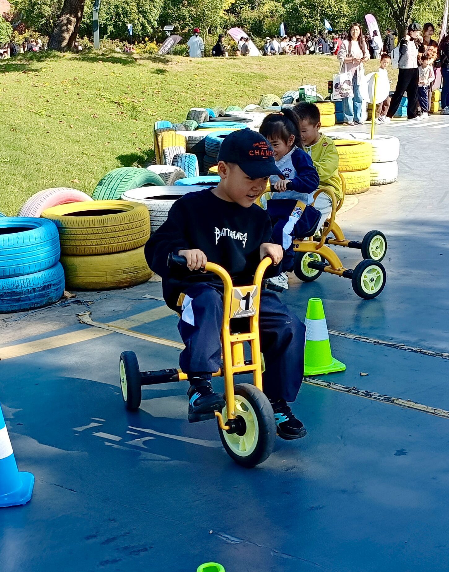 五人合作骑车